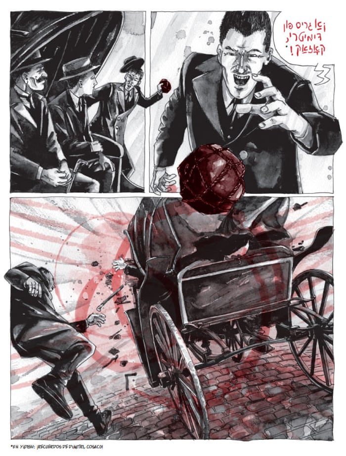 Simón pocházel z židovské rodiny a než emigroval do Argentiny, je v knize označován jako Šimele, tak totiž zní jeho jméno v jidiš. Dle komiksu se Šimele jako malý chlapec stal svědkem pogromu, který v jeho rodné vesnici rozpoutali carští kozáci. Zatímco Simóna tento zážitek určitým způsobem zocelil, jeho bratr si z události odnesl velké trauma, které přerostlo v duševní nemoc.